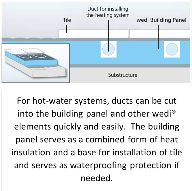 Are you using an electric or hydroponic floor heating system? The wedi® Building Panels will help isolate that cold room below from the tile in the bathroom and help your floor heat system operate more efficiently.